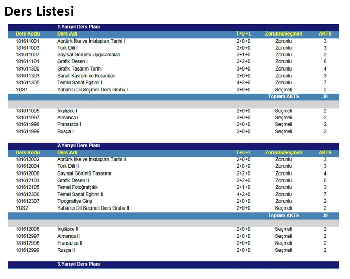 1. Yarıyıl Dersleri